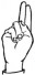 На ћирилици написано ИРИНА КЉУКОВНИЦА састоји се из 15 слова [?]. Исписано ћириличном једноручном азбуком за глувонеме: